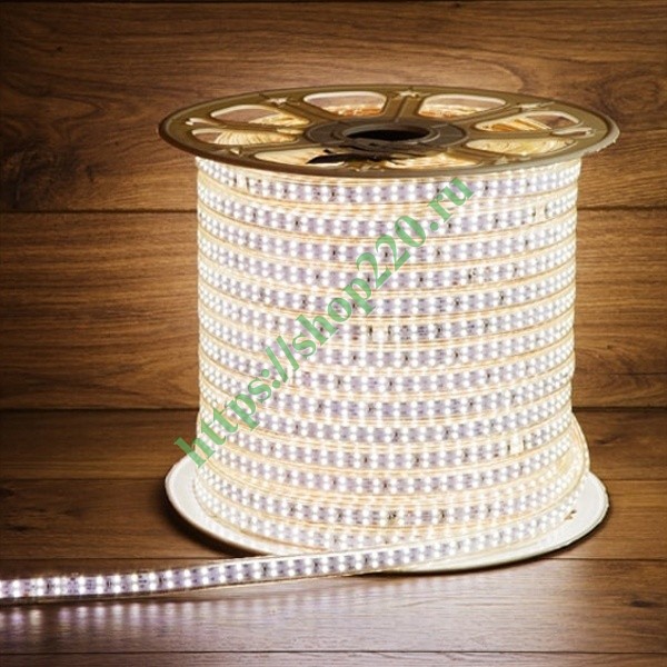 Герметичная Led лента длинной 20 метров, питанием от сети 230 Вольт, 60 светодиодов в метре мощностью 4,8 Ватт, теплого белого света.
