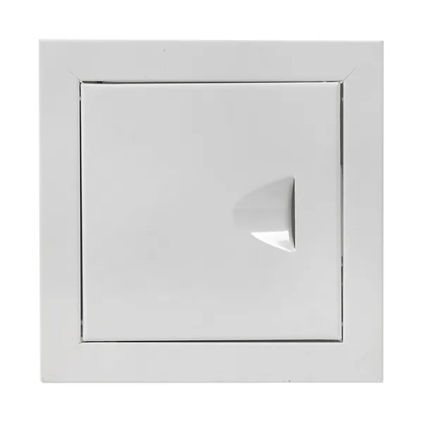 Люки ревизионные применяются для обеспечения оперативного доступа к установленному в нише сантехническому, электротехническому и иному оборудованию. Изготовлен из стали. Люк окрашен порошковой краской в белый цвет. На дверце выдавлен паз для удобного открывания люка. Габаритный размер по внутренней рамке 150*150 мм. Для установки в нишу в раме люков предусмотрены круглые монтажные отверстия.