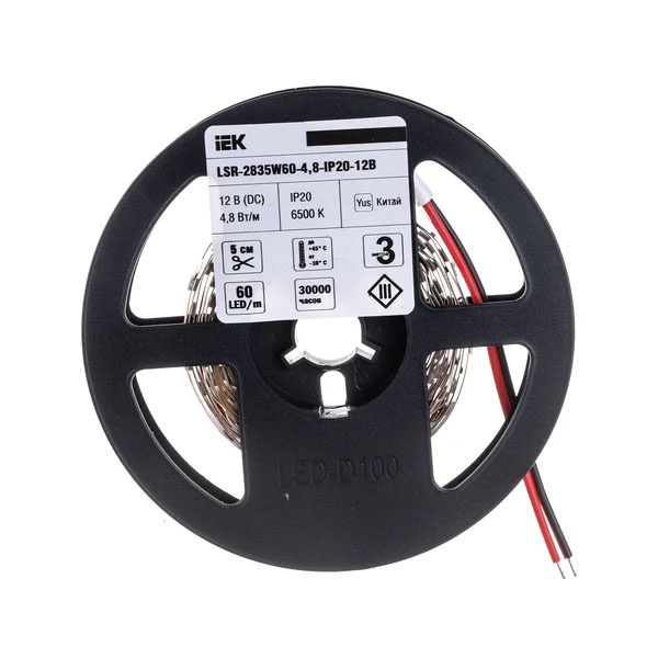 Лента светодиодная LED LSR-2835W60-4.8-IP20-12В (уп.3м) IEK LSR1-2-060-20-3-03