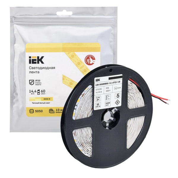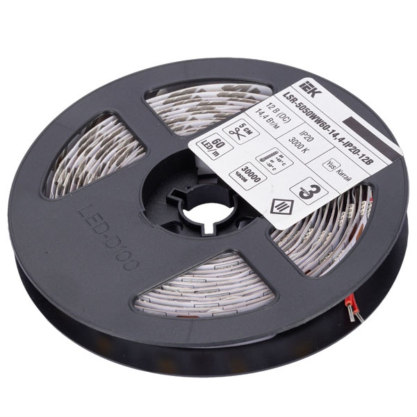 Лента светодиодная LED LSR-5050WW60-14.4-IP20-12В (уп.3м) IEK LSR2-1-060-20-3-03