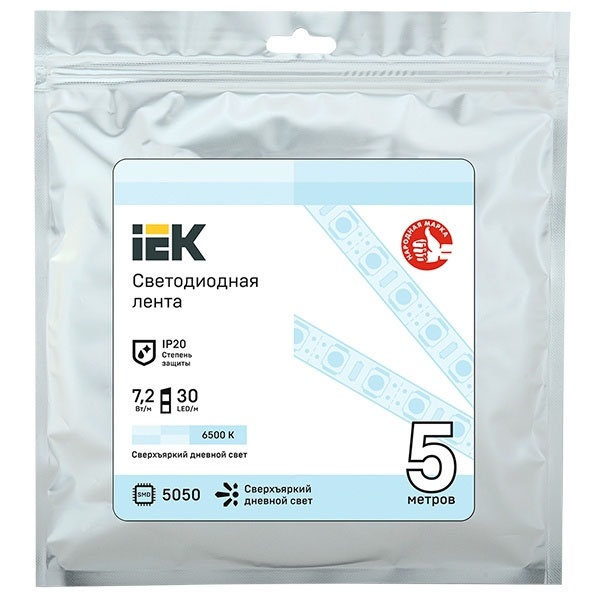 Лента светодиодная LED LSR-5050W30-7.2-IP20-12В (уп.5м) IEK LSR2-2-030-20-3-05