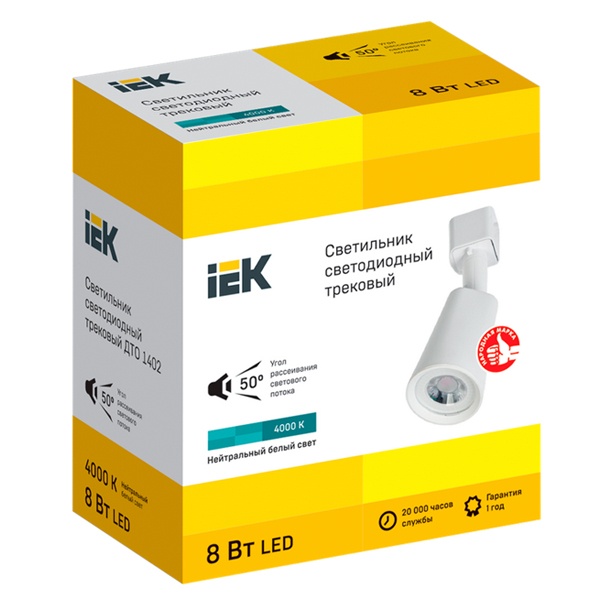 • Светильник трековый однофазный ИЭК LED ДТО 1402 8W 4000К 560Lm 50° белый