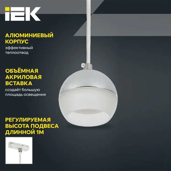 Светильник на подвесе спот акцентного освещения ламповый на шинопровод ИЭК 4119 под лампу с цоколем GX53 мощностью до 15 Вт, цвет хром LT-UCB0-4119-GX53-1-K23