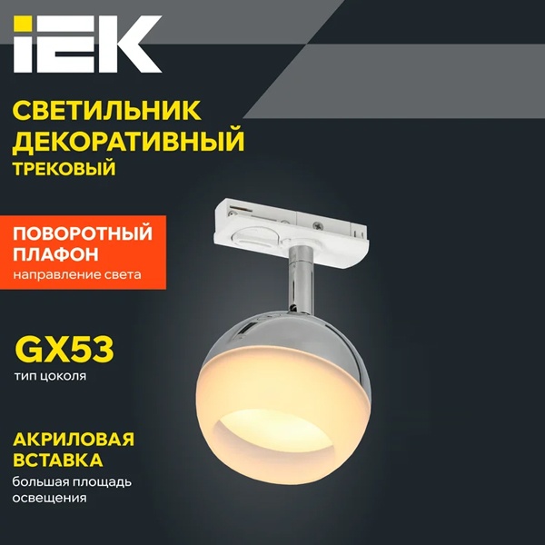 Светильник регулируемый спот акцентного освещения ламповый на шинопровод ИЭК 4118 под лампу с цоколем GX53 мощностью до 15 Вт, цвет хром LT-USB0-4118-GX53-1-K23