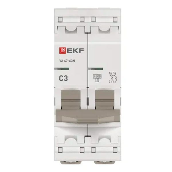 M634203C Автоматический выключатель EKF PROxima ВА 47-63N 3А 2P C 4,5кА (автомат электрический)