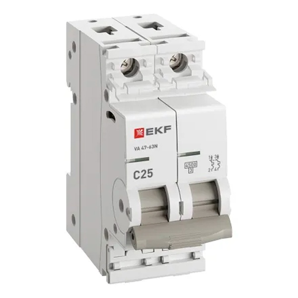 Автоматический выключатель EKF PROxima ВА 47-63N 25А 2P C 4,5кА (автомат электрический)