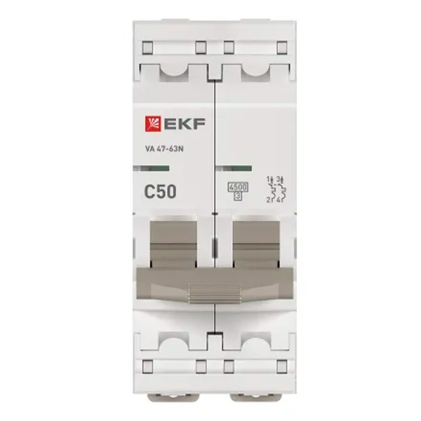 Автоматический выключатель EKF PROxima ВА 47-63N 50А 2P C 4,5кА (автомат электрический)