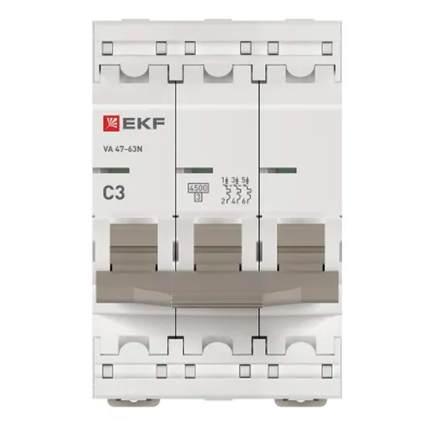 M634303C Автоматический выключатель EKF PROxima ВА 47-63N 3А 3P C 4,5кА (автомат электрический)