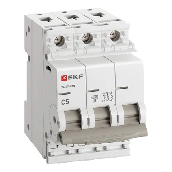 Автоматический выключатель EKF PROxima ВА 47-63N 5А 3P C 4,5кА (автомат электрический)