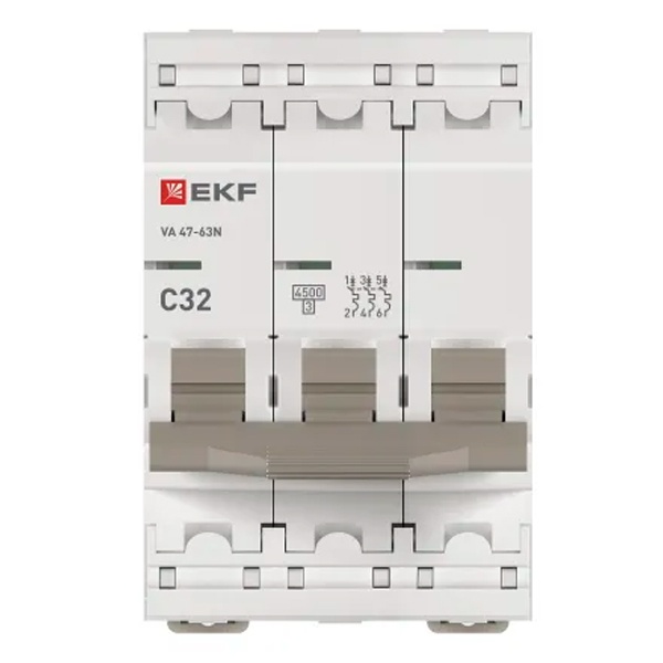 Автоматический выключатель EKF PROxima ВА 47-63N 32А 3P C 4,5кА (автомат электрический)
