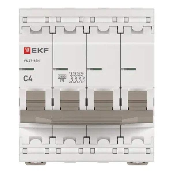 • Автоматический выключатель EKF PROxima ВА 47-63N 4А 4P C 4,5кА (автомат электрический)