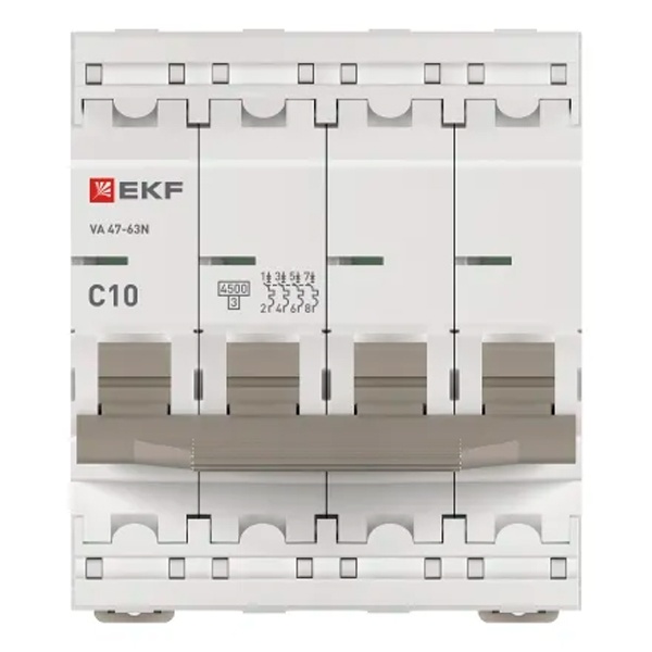 M634410C Автоматический выключатель EKF PROxima ВА 47-63N 10А 4P C 4,5кА (автомат электрический)