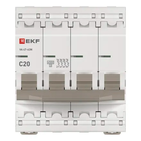 Автоматический выключатель EKF PROxima ВА 47-63N 20А 4P C 4,5кА (автомат электрический)