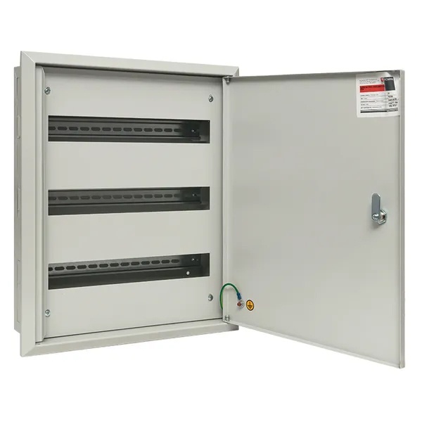 Компактный распределительный бокс ЩРВ от производителя EKF серии PROxima предназначен для размещения модульного оборудования, сборки щитов распределения электроэнергии и защиты сетей от токов перегрузки и короткого замыкания. Он представляет собой конструкцию встраиваемой установки, выполненную из прочной стали толщиной 1 мм. Оболочка окрашена порошковой краской светло-серого цвета RAL 7035. Данная модель бокса монтируется в специально подготовленную нишу в кирпичной или бетонной стене и рассчитана на монтаж 54 модульных устройств с номинальной величиной тока до 125 Ампер: 18 модулей в 3 ряда. Установка аппаратуры производится на 3 DIN-рейки, которые входят в комплект поставки. Степень защиты от попадания влаги и пыли внутрь корпуса составляет IP31. Климатическое исполнение, при котором допускается эксплуатация щита, соответствует УХЛ3: от -60 до +40 градусов.