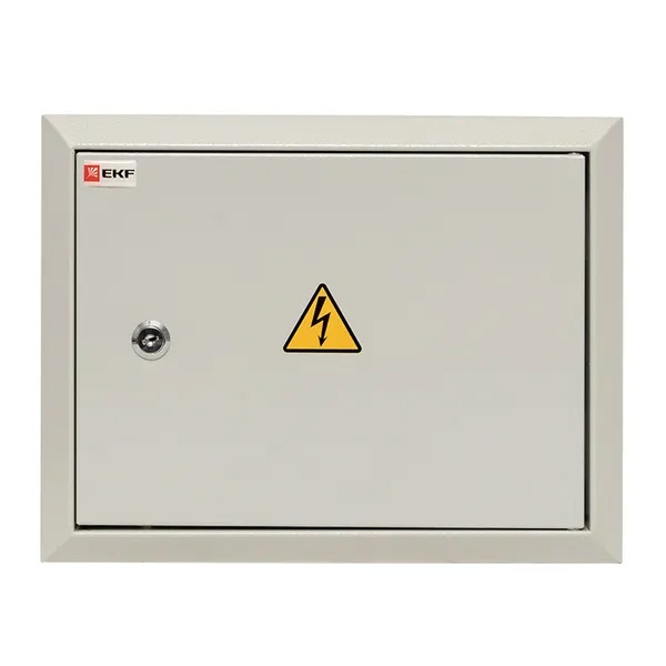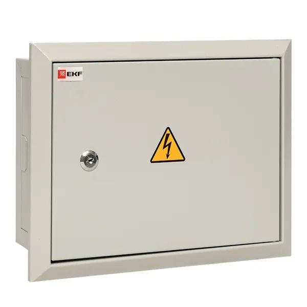 Металлический корпус ЩРВ от производителя EKF серии PROxima предназначен для установки устройств автоматики модульного типа, а также для сборки систем передачи электроэнергии потребителям и защиты включенного в электросеть оборудования от негативного воздействия тока при возникновении аварийной ситуации. Он представляет собой компактную конструкцию встраиваемого типа, выполненную из листовой стали толщиной 1 мм. Данная модель разработана специально для монтажа в нишах бетонных или кирпичных стен и обладает степенью защиты IP31. Распределительный шкаф рассчитан на установку 9 модулей в один ряд с номинальной величиной тока до 125 Ампер.