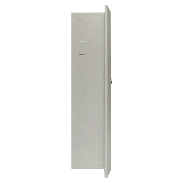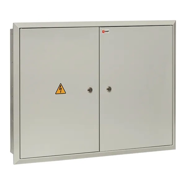 Распределительный бокс ЩРВ от известной компании EKF серии PROxima представляет собой компактную двухдверную конструкцию с установкой встраиваемого типа, которая служит оболочкой для сборки различного модульного оборудования, устройств управления, таймеров и УЗО. Сфера применения данного шкафа разнообразна: от жилых и офисных помещений до производственных цехов, подвалов и промышленных зданий. Материалом изготовления корпуса служит прочная листовая сталь толщиной до 1 мм, обеспечивающая степень защиты IP31. Двери сплошного типа с углом открывания 120 градусов запираются на почтовый замок и обеспечивают защиту от несанкционированного доступа. Для монтажа щита необходимо заранее подготовленное углубление в стене со следующими размерами: 490х690х110 мм. Внутреннее пространство оснащено 6-ю DIN-рейками, на которые монтируется аппаратура модульного типа в количестве 90 единиц: 2 панели по 3 ряда вместимостью до 15 модулей. Номинальная нагрузка тока составляет 125 Ампер при напряжении сети 230-400 Вольт.