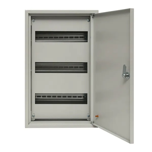 Дверь сплошного типа с углом открывания 120 градусов запирается на почтовый замок, чем обеспечивает защиту от несанкционированного доступа. Подключение кабеля производится снизу сквозь имеющиеся кабельные вводы. Распределительный щит используется для размещения в жилых секторах, офисах и производственных цехах.
