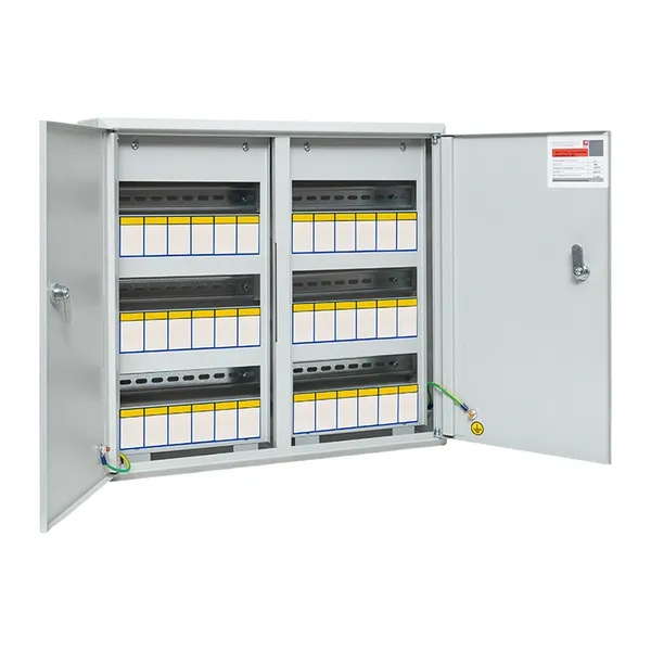 Шкаф оснащен 2-мя сплошными дверьми, которые запираются на почтовый замок. Подключение кабеля осуществляется снизу сквозь имеющиеся кабельные отверстия. Распределительный щит используется для размещения внутри зданий жилого сектора, офисах или производственных цехах. Стандартная упаковка включает в себя 6 DIN-реек, на которые производится монтаж устройств, поводок заземления, маркировочную таблицу, знаки электробезопасности и монтажный комплект.