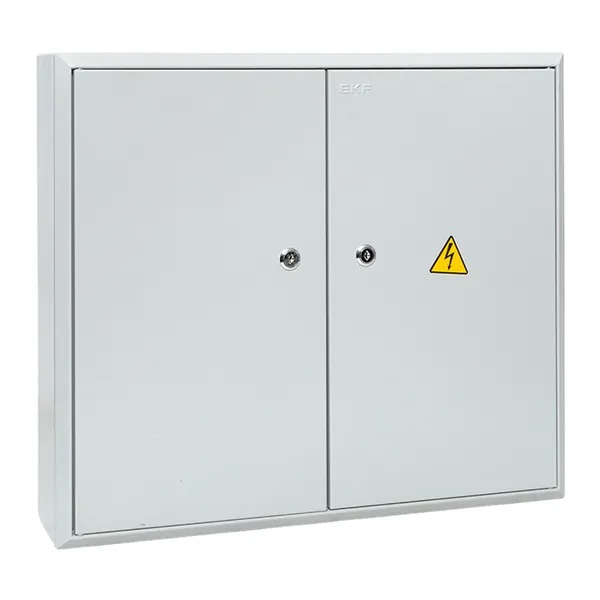 Металлический корпус ЩРН от производителя EKF серии PROxima предназначен для установки устройств автоматики модульного типа, а также для сборки систем передачи электроэнергии потребителям и защиты включенного в электросеть оборудования от негативного воздействия тока при возникновении аварийной ситуации. Он представляет собой оболочку навесного типа, выполненную из листовой стали толщиной 1 мм. Данная модель создана сварным методом, чем обеспечивает жесткость и герметичное соединение частей корпуса. Она обладает степенью влаго- и пылезащиты IP31. Внутреннее пространство состоит из 2 панелей, которые содержат по 3 ряда вместимостью до 12 модулей. Общее количество устройств, допустимых для монтажа, составляет 72 единицы с номинальным значением тока до 125 Ампер.