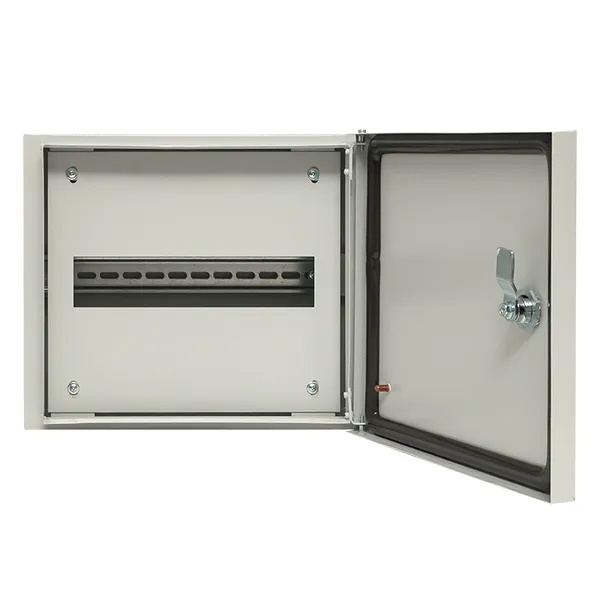 Распределительный щит ЩРН торговой марки EKF представляет собой герметичную конструкцию навесной установки, служащую оболочкой для сборки различного модульного оборудования, устройств управления, автоматизации и пунктов распределения электроэнергии. Сфера его применения разнообразна: от жилых и офисных помещений до производственных цехов, подвалов и промышленных секторов. Особенностью модели является возможность ее размещения на открытом воздухе под навесом. Внешне шкаф имеет светло-серое покрытие RAL 7035 в виде атмосферостойкой порошковой краски. Материалом изготовления оболочки и двери служит сталь толщиной 1 мм, обеспечивающая надежную степень защиты IP54. Дверь сплошного типа с углом открывания 120 градусов запирается на замок-треугольник. Внутреннее пространство оснащено DIN-рейкой для размещения 12 устройств модульного типа.