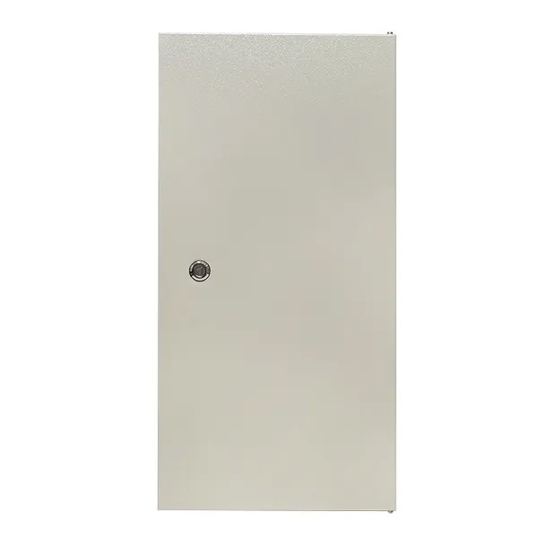 Дверь сплошного типа с углом открывания 120 градусов запирается на замок-треугольник, идущий в наборе. В комплект поставки также входит паспорт и 4 DIN-рейки, на которые производится установка аппаратуры. Подключение кабеля осуществляется снизу сквозь имеющиеся кабельные вводы. Распределительный щит обладает эргономичным дизайном и практичен в эксплуатации. Он может размещаться на открытом воздухе под навесом, поэтому отлично подходит для размещения как в жилом, так и промышленном секторе.