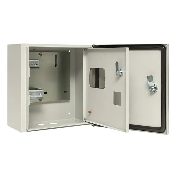 Наружный корпус ЩУ от производителя EKF серии Basic предназначен для сборки учетно-распределительных электрощитов на основе счетчиков и модульного оборудования. С его помощью обеспечивается ввод и учет электроэнергии. Он представляет собой герметичную компактную конструкцию, выполненную из листовой стали толщиной 0.7 мм с покрытием в виде атмосферостойкой порошковой краски светло-серого цвета RAL 7035. Надежная степень защиты IP54 не допускает внутреннего попадания пыли и влаги. Для этого с внутренней стороны по периметру двери имеется герметичный уплотнитель. Особенностью модели является наличие двух дверей, запирающихся на замок-треугольник, идущий в комплекте. Первая дверь сплошного типа обеспечивает защиту, а вторая имеет прозрачное окно для снятия показаний счетчика, который устанавливается на специальную панель размером 200х230 мм. Также внутреннее пространство корпуса рассчитано на установку устройств шириной 4 модуля в 2 ряда на DIN-рейках. Вмонтированное оборудование допускает номинальный ток до 125 Ампер при напряжении сети 230-400 Вольт.