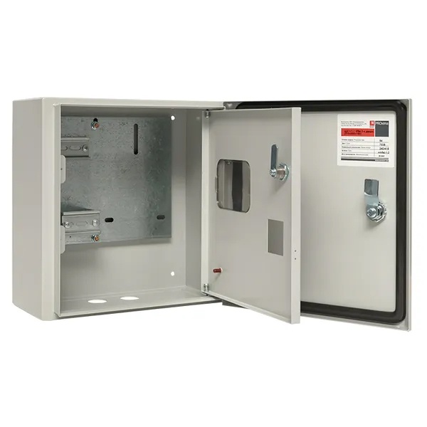 Металлический корпус ЩУ от производителя EKF серии PROxima предназначен для сборки учетно-распределительных электрощитов на основе счетчиков и модульного оборудования. С его помощью производится ввод и учет электроэнергии. Он представляет собой герметичную конструкцию наружной установки, выполненную из листовой стали толщиной 1.2 мм с покрытием в виде атмосферостойкой порошковой краски светло-серого цвета RAL 7035. Надежная степень защиты IP54 не допускает попадания внутрь шкафа пыли и влаги. Для этого с внутренней стороны по периметру двери имеется герметичный уплотнитель и сальники на отверстиях для подвода кабеля снизу корпуса. Особенностью модели является наличие двух дверей, запирающихся на замок. Первая дверь сплошного типа обеспечивает защиту, а вторая имеет прозрачное окно для снятия показаний счетчика, который устанавливается на специальную панель размером 200х230 мм. Также внутреннее пространство корпуса рассчитано на установку устройств шириной 4 модуля в 2 ряда. Вмонтированное оборудование допускает токовую нагрузку до 125 Ампер при напряжении сети 230-400 Вольт.