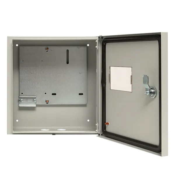 Для подключения кабелей предусмотрены отверстия снизу корпуса. Щит может быть размещен на открытом воздухе под навесом на плоской поверхности или на столбе.