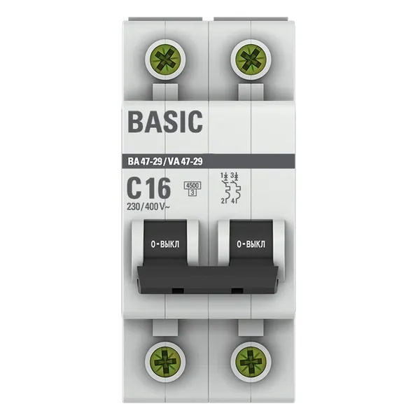 Автоматический выключатель EKF Basic ВА 47-29 2P 16А (C) 4,5кА (автомат электрический)