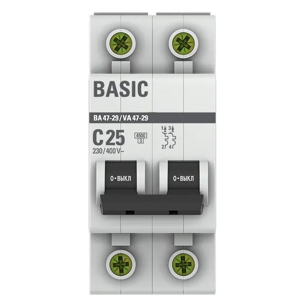 Автоматический выключатель EKF Basic ВА 47-29 2P 25А (C) 4,5кА (автомат электрический) mcb4729-2-25C