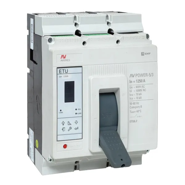 Трехполюсный моноблочный автоматический выключатель ЭКФ 1250 Ампер с электронной защитой ETU6.2 mccb-53-1250M-6.2-av
