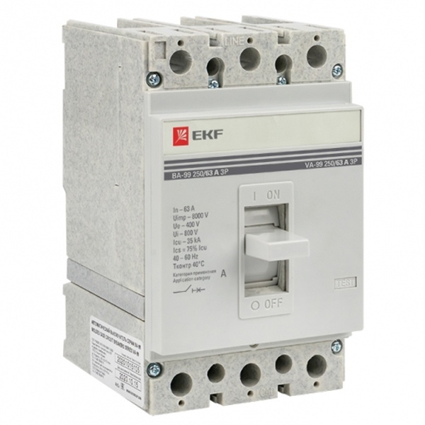 Силовой трехполюсный электрический автомат ВА-99-250, ток нагрузки 63 Ампера с отключающей способностью 35кА, ЕКФ. mccb99-250-63