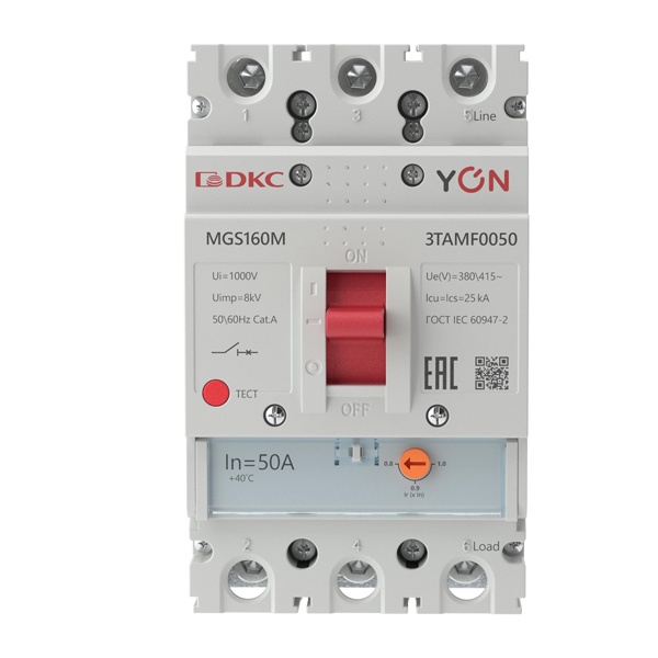 MGS160M-3TAMF0050 Автоматический выключатель DKC YON MGS160 3P 40-50A регулировка теплового расцепителя 25кА (автомат электрический)