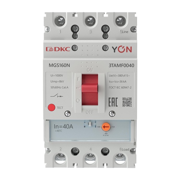 MGS160N-3TAMF0040 Автоматический выключатель DKC YON MGS160 3P 32-40A регулировка теплового расцепителя 36кА (автомат электрический)