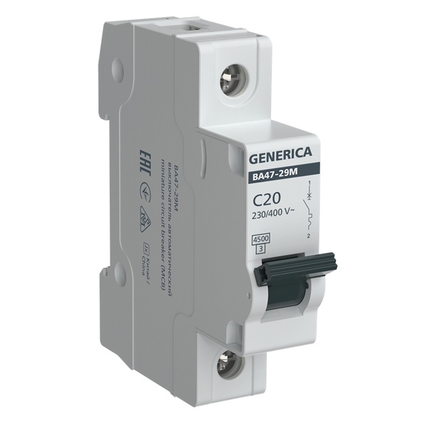 Автоматический выключатель Generica (ИЭК) ВА 47-29М 1Р 20А 4,5кА характеристика С (автомат электрический)