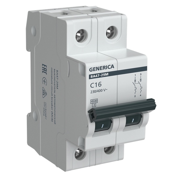 Автоматический выключатель Generica (ИЭК) ВА 47-29М 2Р 16А 4,5кА характеристика С (автомат электрический) MVA21-2-016-C-G