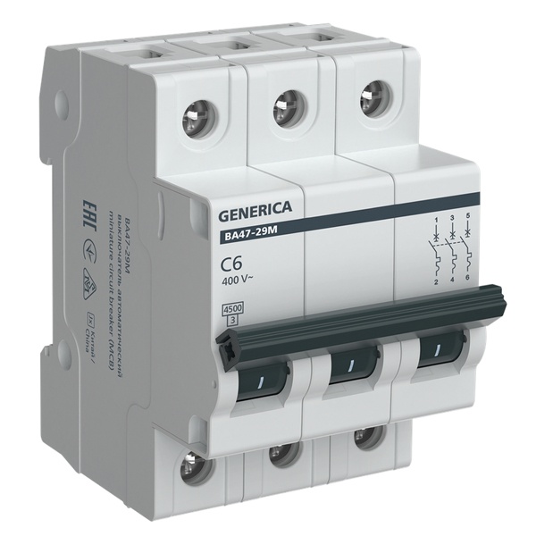 Автоматический выключатель Generica (ИЭК) ВА 47-29М 3Р 6А 4,5кА характеристика С (автомат электрический) MVA21-3-006-C-G
