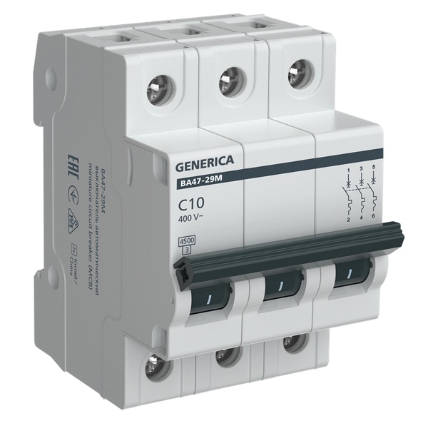 Автоматический выключатель Generica (ИЭК) ВА 47-29М 3Р 10А 4,5кА характеристика С (автомат электрический)