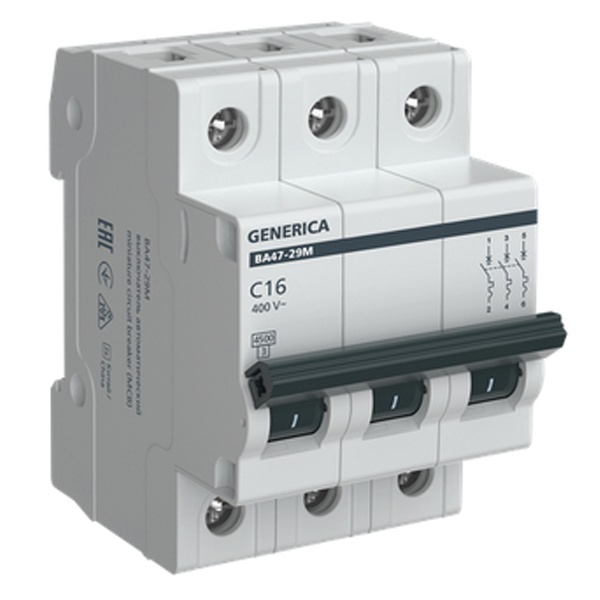 Автоматический выключатель Generica (ИЭК) ВА 47-29М 3Р 16А 4,5кА характеристика С (автомат электрический)