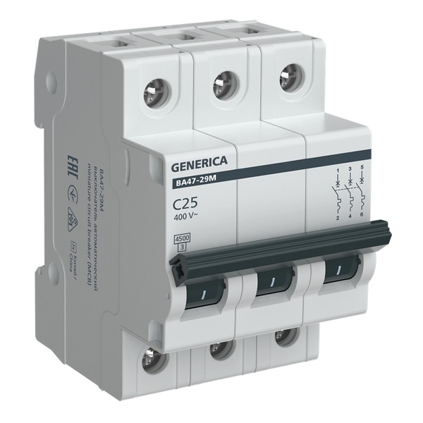 Автоматический выключатель Generica (ИЭК) ВА 47-29М 3Р 25А 4,5кА характеристика С (автомат электрический) MVA21-3-025-C-G