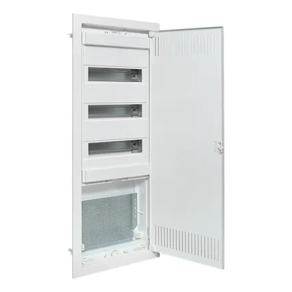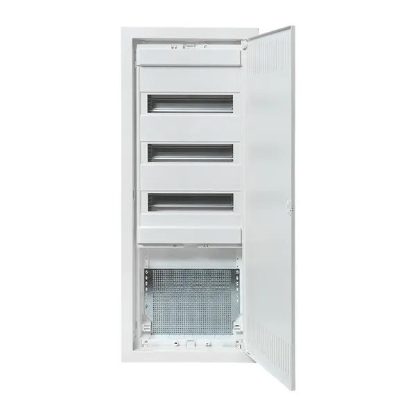 Электрощит для силового и слаботочного оборудования скрытой установки с металлической вентилируемой дверцей, 3 Дин рейки и 1 монтажная панель nv-cb-pmd-3+1