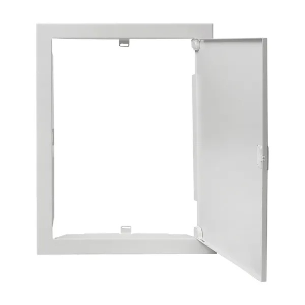 Сплошная дверь из серии «Nova» от известной компании EKF линейки PROxima представляет собой элемент конструкции встраиваемого щита. Ее главным достоинством служит универсальность, которая позволяет собрать силовой, слаботочный или шкаф комбинированного типа. Как правило, такие шкафы применяются для размещения в них различного силового модульного или телекоммуникационного оборудования. Они монтируются в многоквартирных домах, частных секторах, офисных помещениях и торговых залах. Местом установки служат заранее заготовленные ниши в стенах из кирпича, бетона или гипсокартона. Данная модель дверцы сделана из металла. Представляет собой сплошной элемент прямоугольного типа с габаритом 2. Она покрыта порошковой белой краской. Главная функция дверцы состоит в защите оборудования от несанкционированного доступа, от пыли и влаги. Она крепится к основанию щита и имеет следующие размеры: 346х442х7 мм. В комплект поставки входит дверца с рамкой, 4 защелки для ее установки и регулировки, а также 2 крепления в двух точках. Дверца приобретается отдельно. Альтернативой металлической дверцы из данной серии является пластиковая модель или из металла с перфорацией.