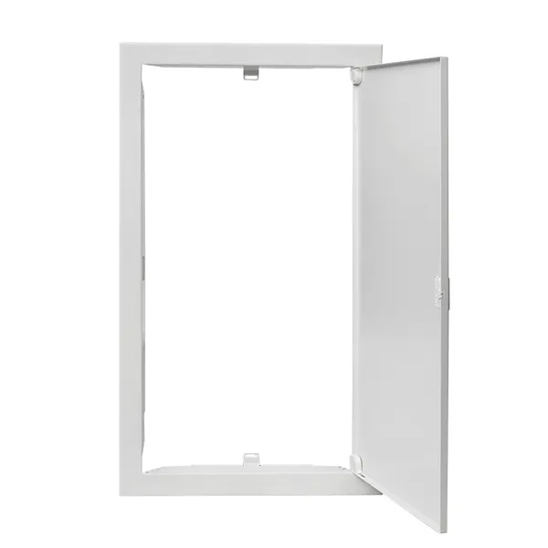 Дверь из серии «Nova» от известного производителя EKF PROxima представляет собой один из элементов сборки силового, слаботочного или комбинированного корпуса. Данная модель имеет сплошное исполнение и предназначена для защиты встроенного оборудования от несанкционированного доступа, от пыли и влаги. Дверь сделана из металла и покрашена порошковой краской белого цвета. Она крепится к основанию щита и имеет габарит 3 со следующими размерами: 346х572х7 мм. Щит в сборе монтируется в стены из бетона, кирпича или гипсокартона. Как правило, он встречается на объектах жилого, офисного или коммерческого типа. В щите размещается различное модульное силовое и слаботочное оборудование, где дверца выступает главным защитным элементом. В комплект поставки входит дверца с рамкой, 4 защелки для ее установки и регулировки, а также 2 крепления в двух точках. Дверца к основанию приобретается отдельно. Еще одним доступным вариантом сборки может служить модель из пластика или металла с перфорацией.