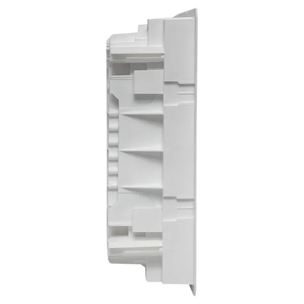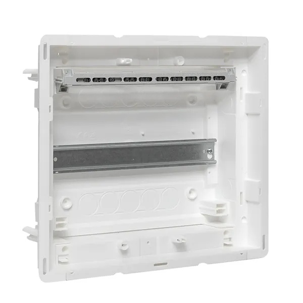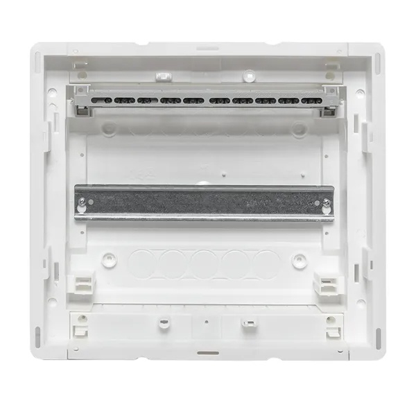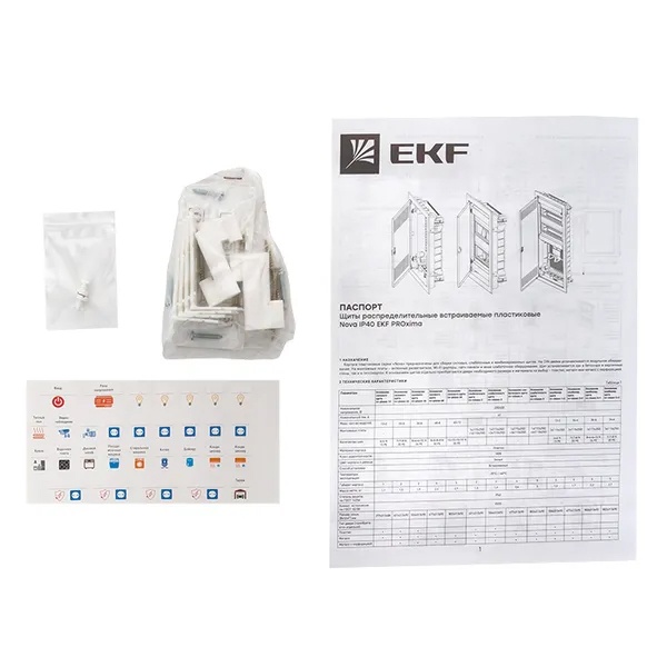 Пластиковый корпус серии «Nova» от известного производителя EKF PROxima предназначен для установки модульного электрооборудования. Он представляет собой основание встраиваемого типа, которое устанавливается как в бетонные и кирпичные стены, так и в гипсокартон. К нему отдельно приобретается дверь необходимого размера и материала на выбор – пластик или металл. Данная модель содержит din-рейку, на которую монтируется модульное оборудование в количестве 12 единиц+2 дополнительных. Цвет исполнения – белый. Сферой применения выступают многоквартирные жилые дома и частные домостроения, офисные помещения. Номинальное напряжение для встраиваемого оборудования составляет 230/400 Вольт, а нагрузка тока достигает 63 Ампер. Основание имеет типоразмер 1, что соответствует следующим габаритам: 305х272х85 мм, глубина ниши должна иметь параметры: 277х313х88 мм. Степень защиты составляет IP40, класс ударопрочности IK08, климатическое исполнение УХЛ3, температура окружающей среды находится в диапазоне от -25 до +60 градусов Цельсия. Комплектация основания силового щита дополнена шинами N/PE, пластроном и 2 съемными фланцами, 4 монтажными пластинами, 4 комплектами монтажа для полых стен, 2 креплениями пластрона, заглушкой пластрона на 6 модулей, модульной наклейкой и паспортом.