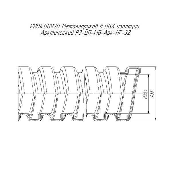 Влагозащищенный гибкий кабельный рукав Р3-ЦП-нг 32мм маслобензостойкий из оцинкованной стали в оболочке ПВХ для защиты электропроводки PR04.00970