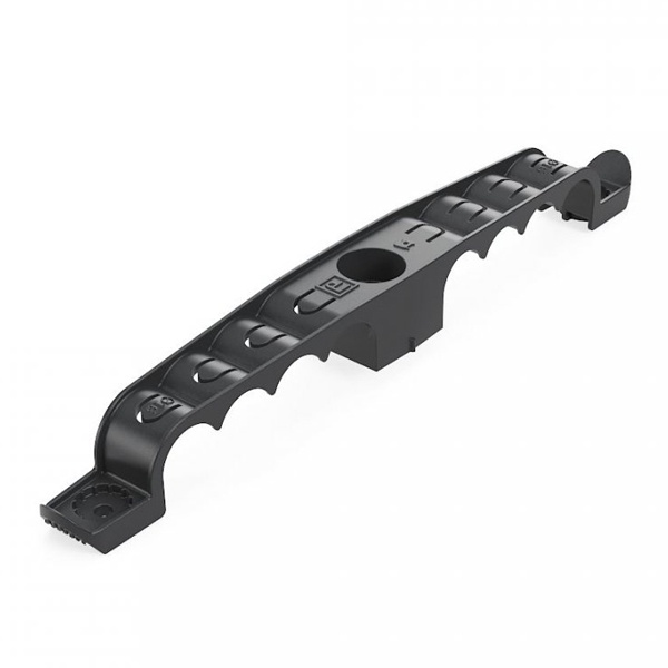 Односторонний держатель обеспечивает возможность одновременной установки нескольких труб, что делает его особенно удобным при монтаже кабельных трасс и инженерных коммуникаций.