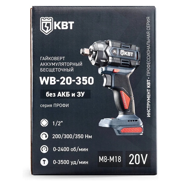 • Гайковерт КВТ WB-20-350 без АКБ и ЗУ Профи с максимальным крутящим моментом 350 Нм