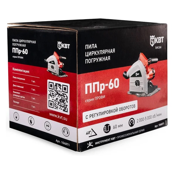 • Пила циркулярная КВТ погружная ППр-60 Профи мощностью 1400 ВТ и регулировкой оборотов