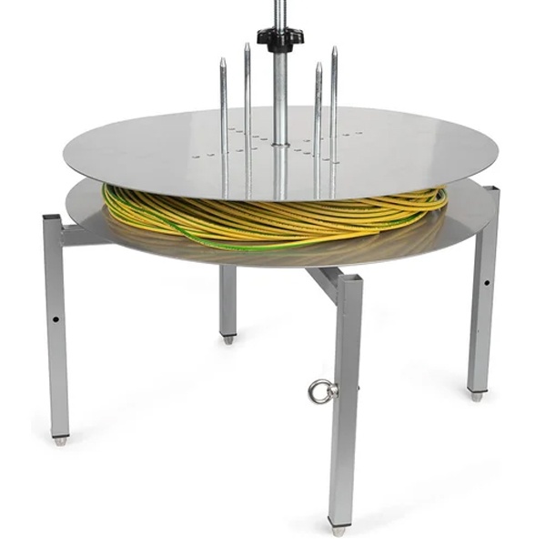 Оно обеспечивает плавное и равномерное вращение бухты, исключает её перекручивание и спутывание, повышает скорость и безопасность работы, а также снижает риск повреждения материала. Дополнительно конструкция позволяет эффективно организовать рабочее пространство, облегчает доступ к расходным материалам и способствует более точной и стабильной подаче кабеля при монтаже или производственных операциях.