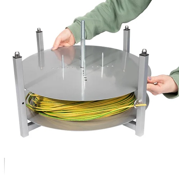 Устройство предназначено для удобной, аккуратной и контролируемой размотки гибких проводов, кабелей и термоусадочных кембриков, свернутых в бухты диаметром от 150 до 480 мм.